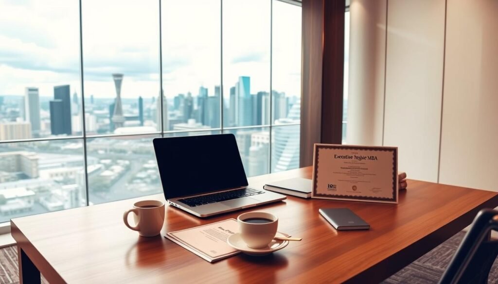 The business world is getting tougher, and top business schools are stepping up. They offer Executive MBA programs for seasoned leaders. The University of Pittsburgh’s Executive MBA is known for its tough classes and real-world learning.